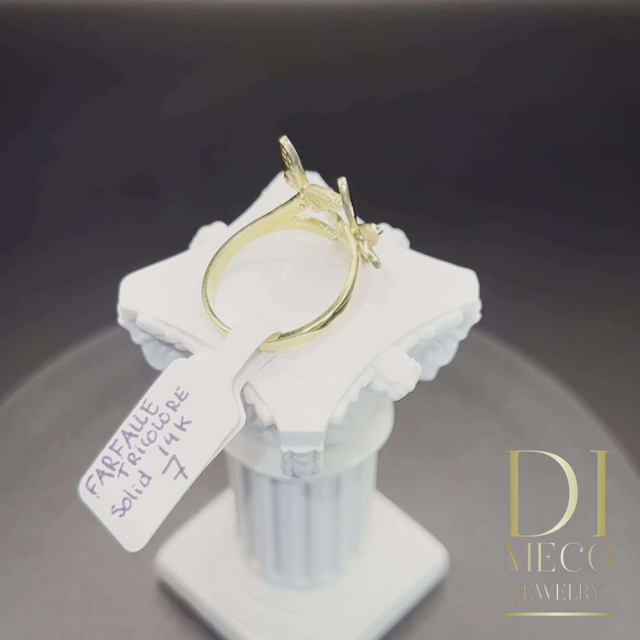 A delicate celebration of beauty and transformation, the 14K Three-Tone Gold Butterfly Ring with CZ Accent by Di Meco embodies grace and sophistication.